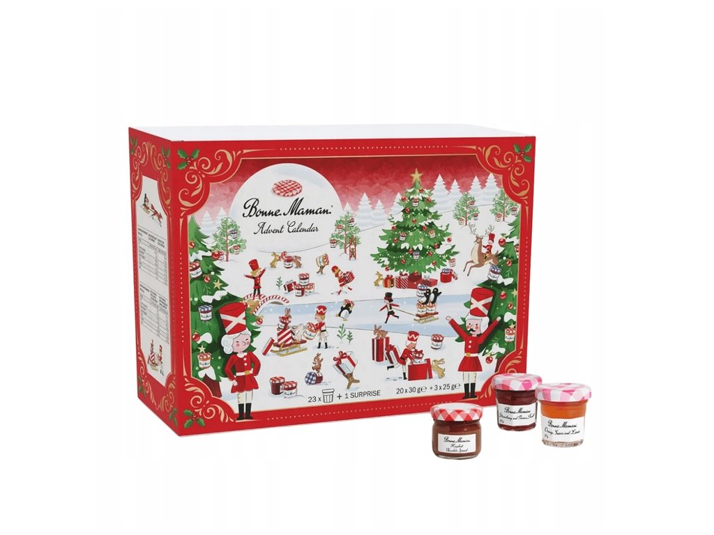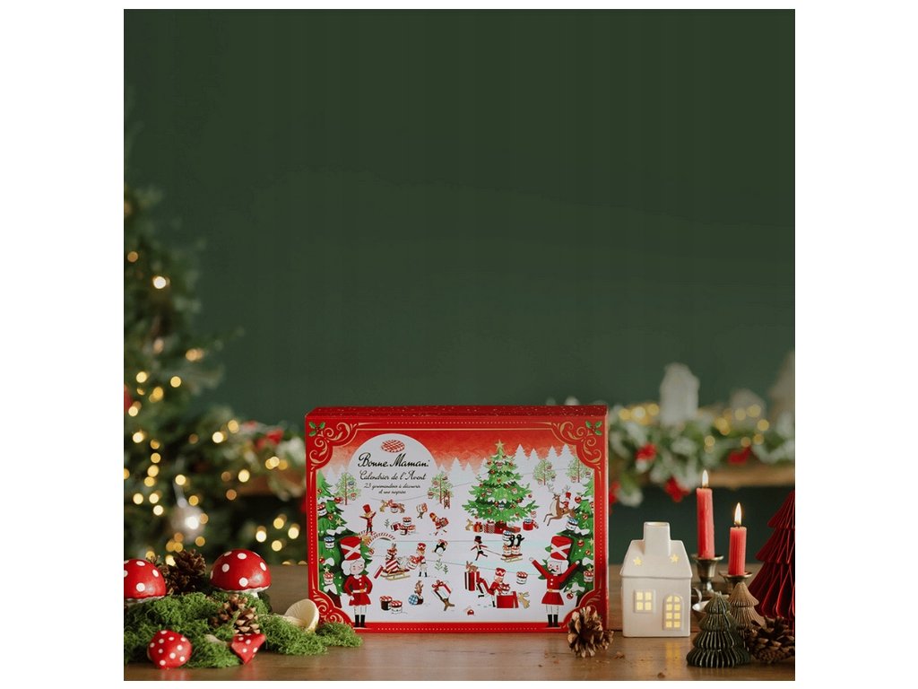 Adventný kalendár Bonne Maman je nielen gurmánskym potešením, ale aj krásnym doplnkom vianočnej výzdoby. Jeho rozkladací dizajn so zimnou scenériou pôsobí ako ozdobná maketa a stane sa originálnou súčasťou interiéru.