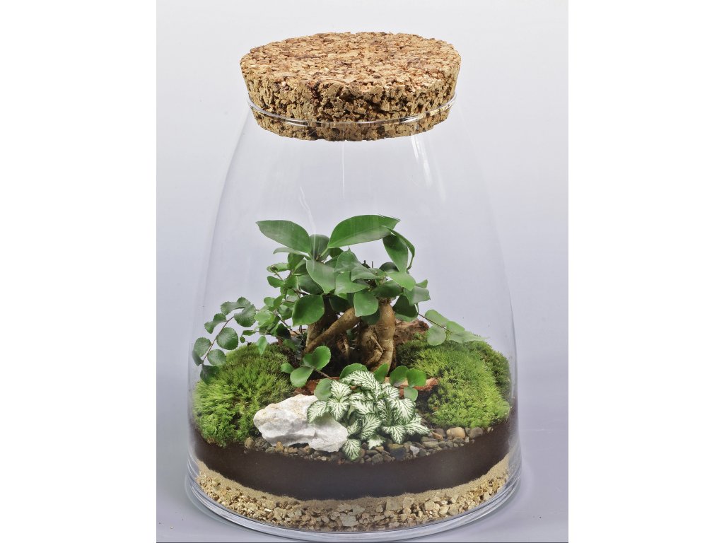 Biosféra v skle zložená z ficusu a machu a fitónie