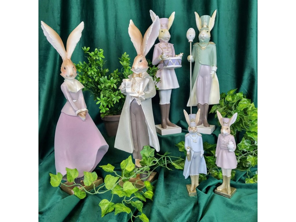 Vytvorte si doma nežnú veľkonočnú atmosféru s týmto krásnym pastelovým stojacim zajačikom. Jeho elegantný vzhľad a jemné farby z neho robia ideálny doplnok do interiéru, či už máte moderný, rustikálny alebo klasický štýl.