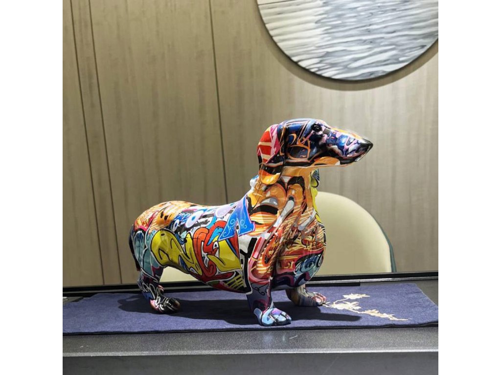 Abstraktná a kreatívna dekorácia: grafiti maľba v tvare jazvečíka